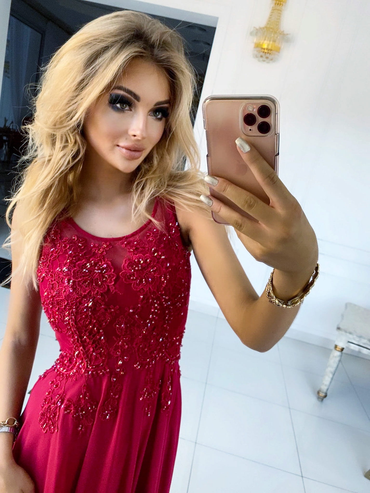 (40, 42) SUKIENKA MAXI FERRARI BORDOWA