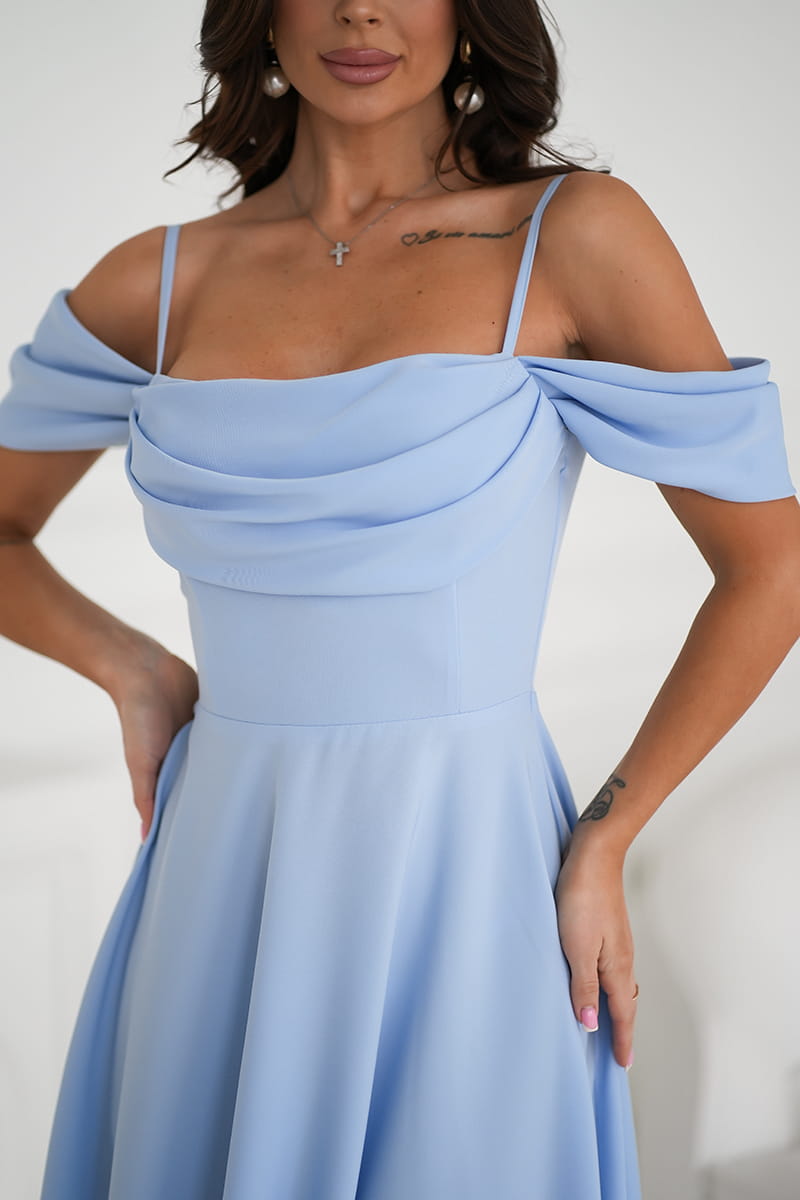 BŁĘKITNA SUKIENKA MIDI Z OPADAJĄCYMI RAMIĄCZKAMI 325