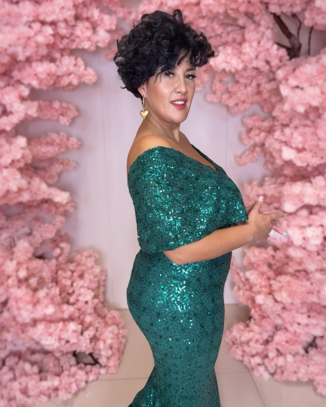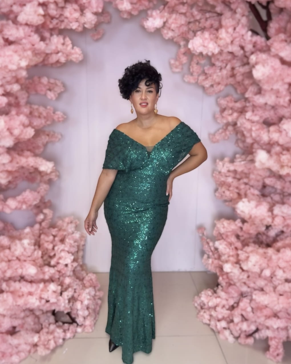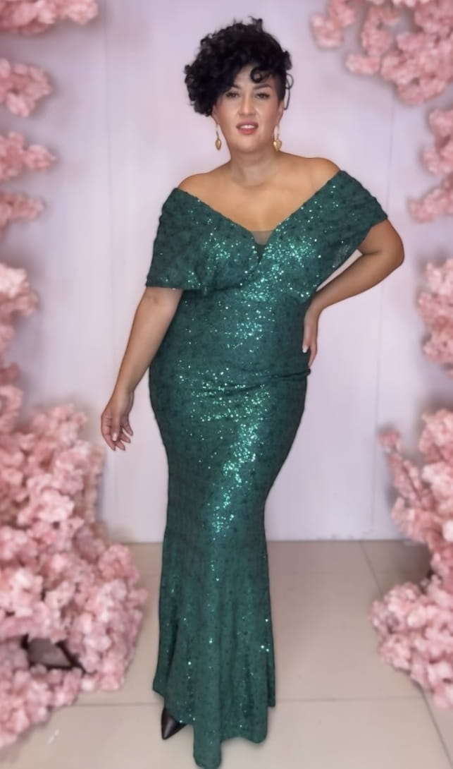 DOPASOWANA SUKIENKA MAXI CEKINY RAMEN BUTELKOWA ZIELEŃ