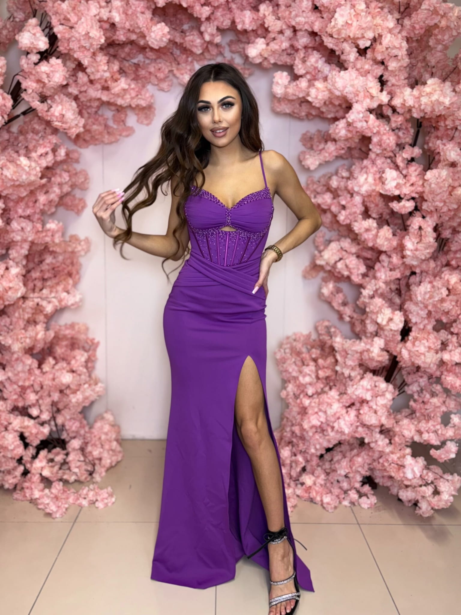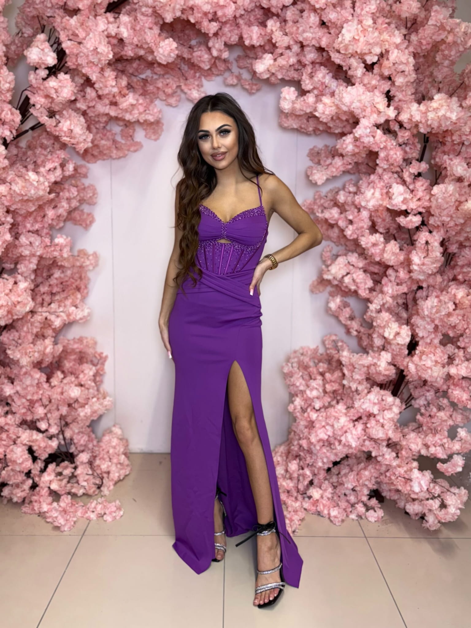 DOPASOWANA SUKIENKA MAXI LUCKIN Z RAMIĄCZKAMI FIOLETOWA