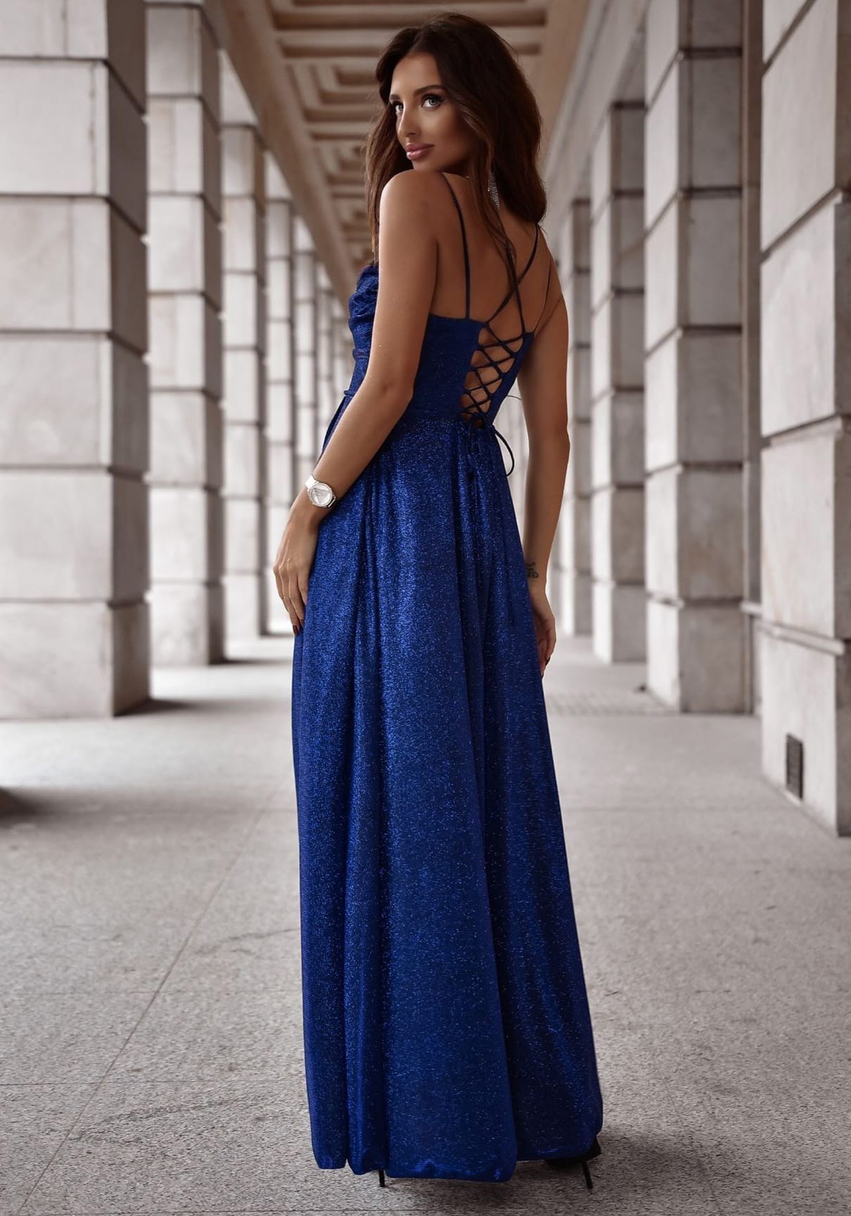 SUKIENKA MAXI BROKATOWA VALERIA LUX GRANATOWA 001171
