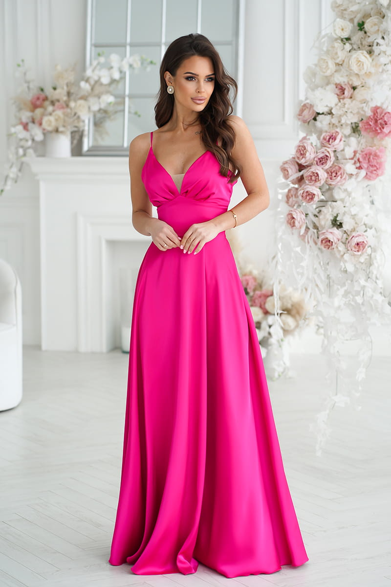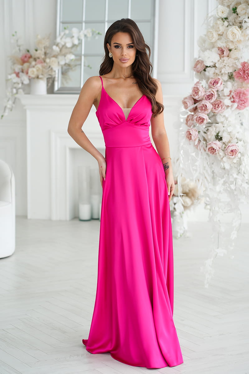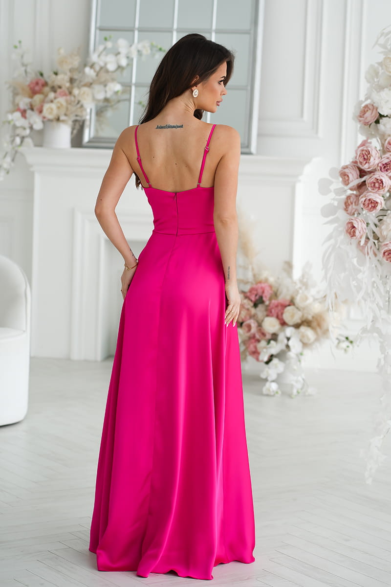 SUKIENKA SATYNOWA Z ROZCIĘCIEM NA NODZE FUKSJA 282
