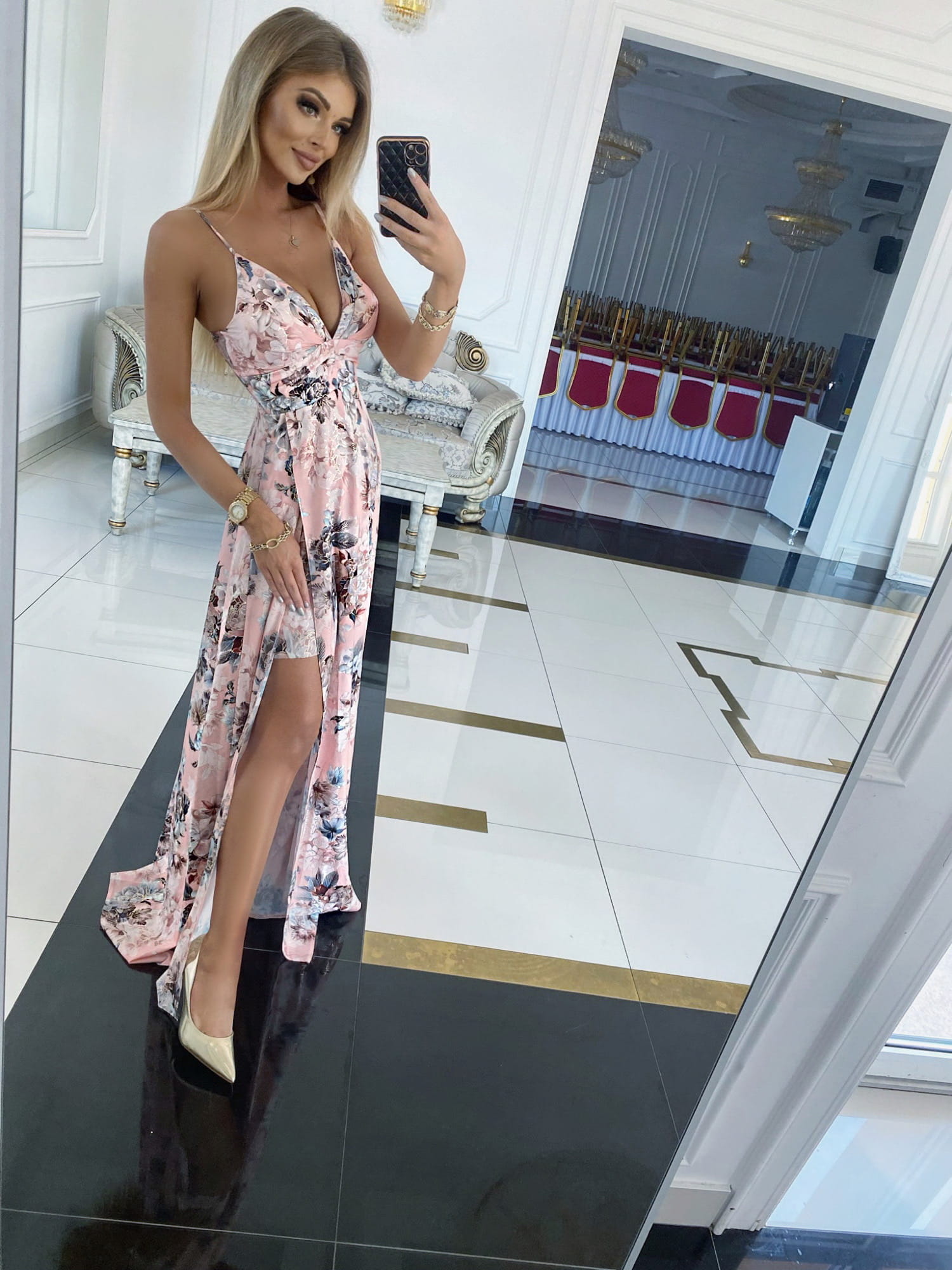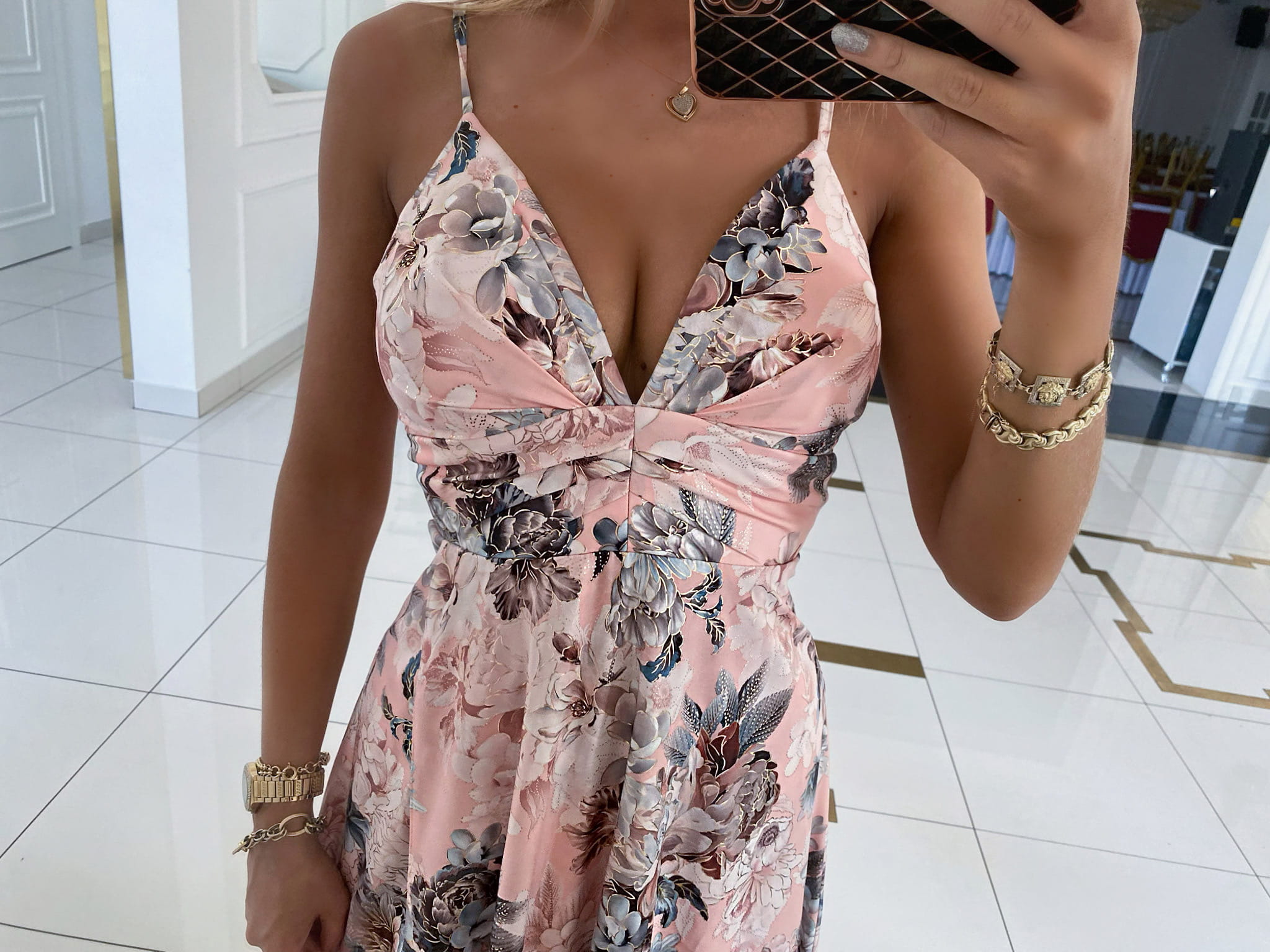 (38) SUKIENKA MAXI KWIATY BRZOSKWINIOWA DORIANA