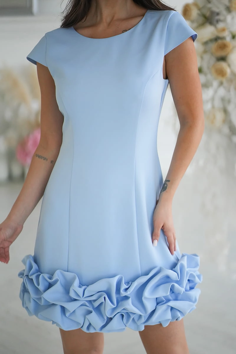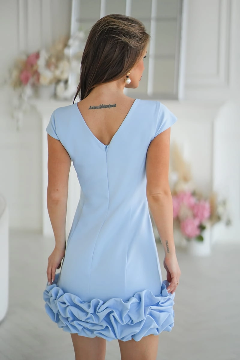 BŁĘKITNA KRÓTKA SUKIENKA Z EFEKTOWNYM WYKOŃCZENIEM 343