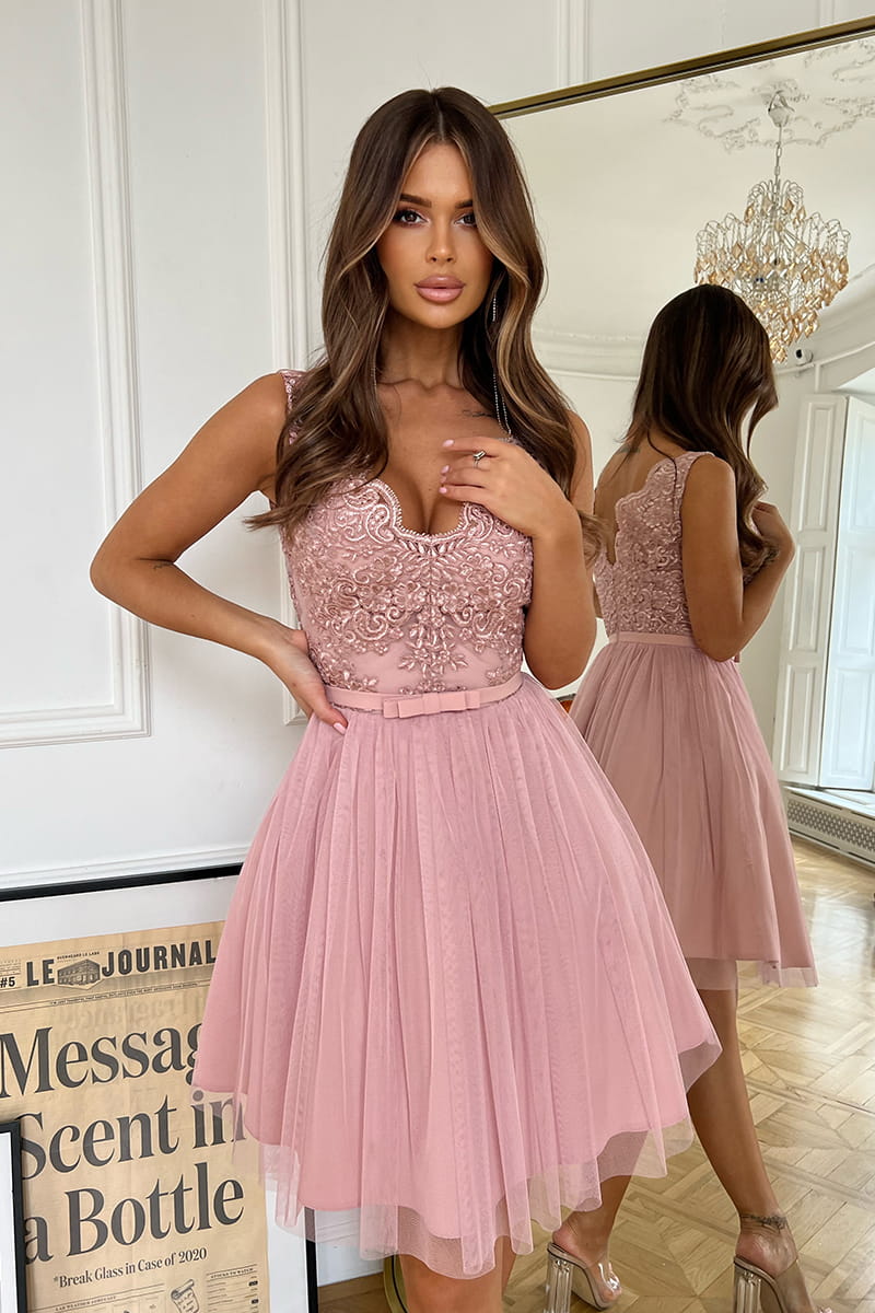 ROZKLOSZOWANA SUKIENKA BRUDNY RÓŻ 2206
