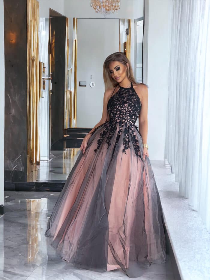 SUKIENKA MAXI LOLITA CZARNY-RÓŻ