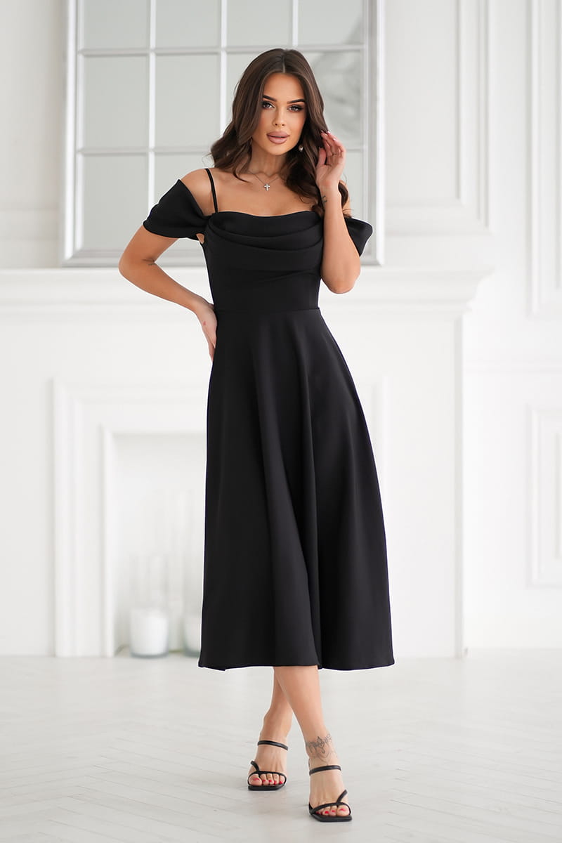 SUKIENKA MIDI Z OPADAJĄCYMI RAMIĄCZKAMI CZARNA 325