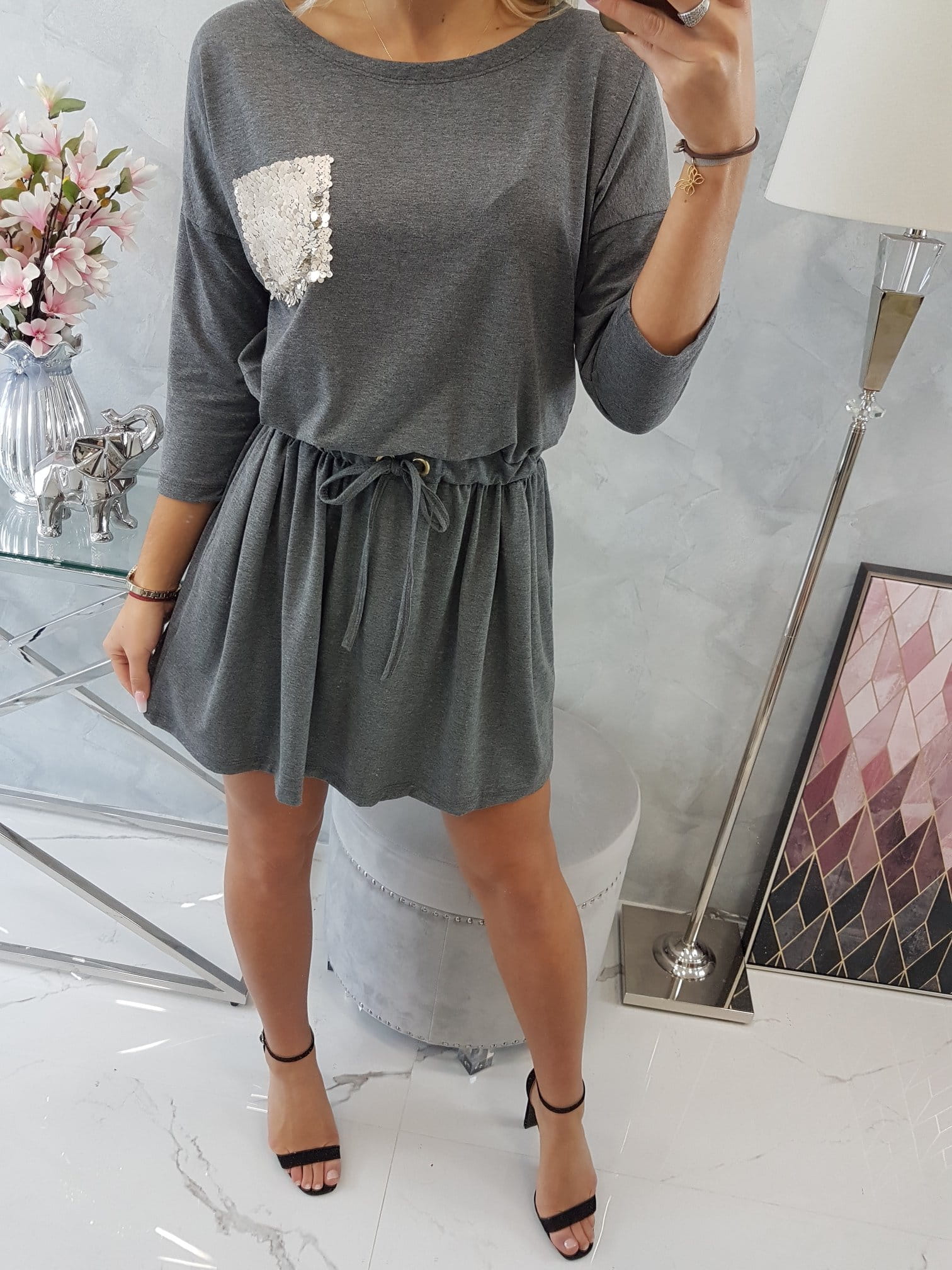 SUKIENKA Z CEKINOWĄ KIESZONKĄ GRAFITOWA T9004