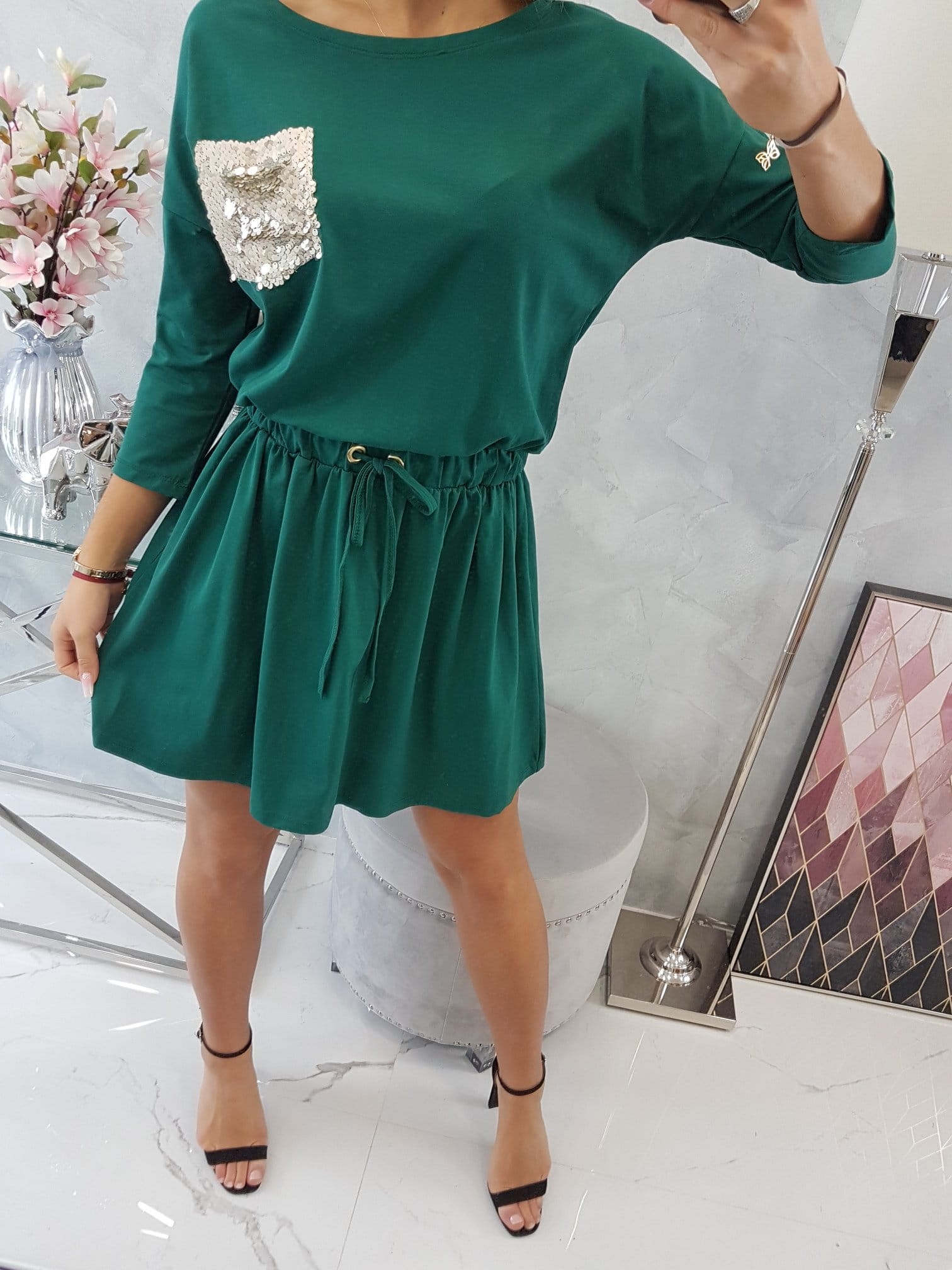 SUKIENKA Z CEKINOWĄ KIESZONKĄ ZIELONA T9004